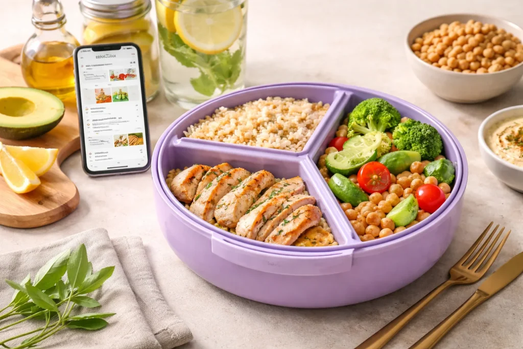 | 🍱 Principe du dosage par compartiments | Répartir protéines, féculents et légumes sans peser ni compter les calories |